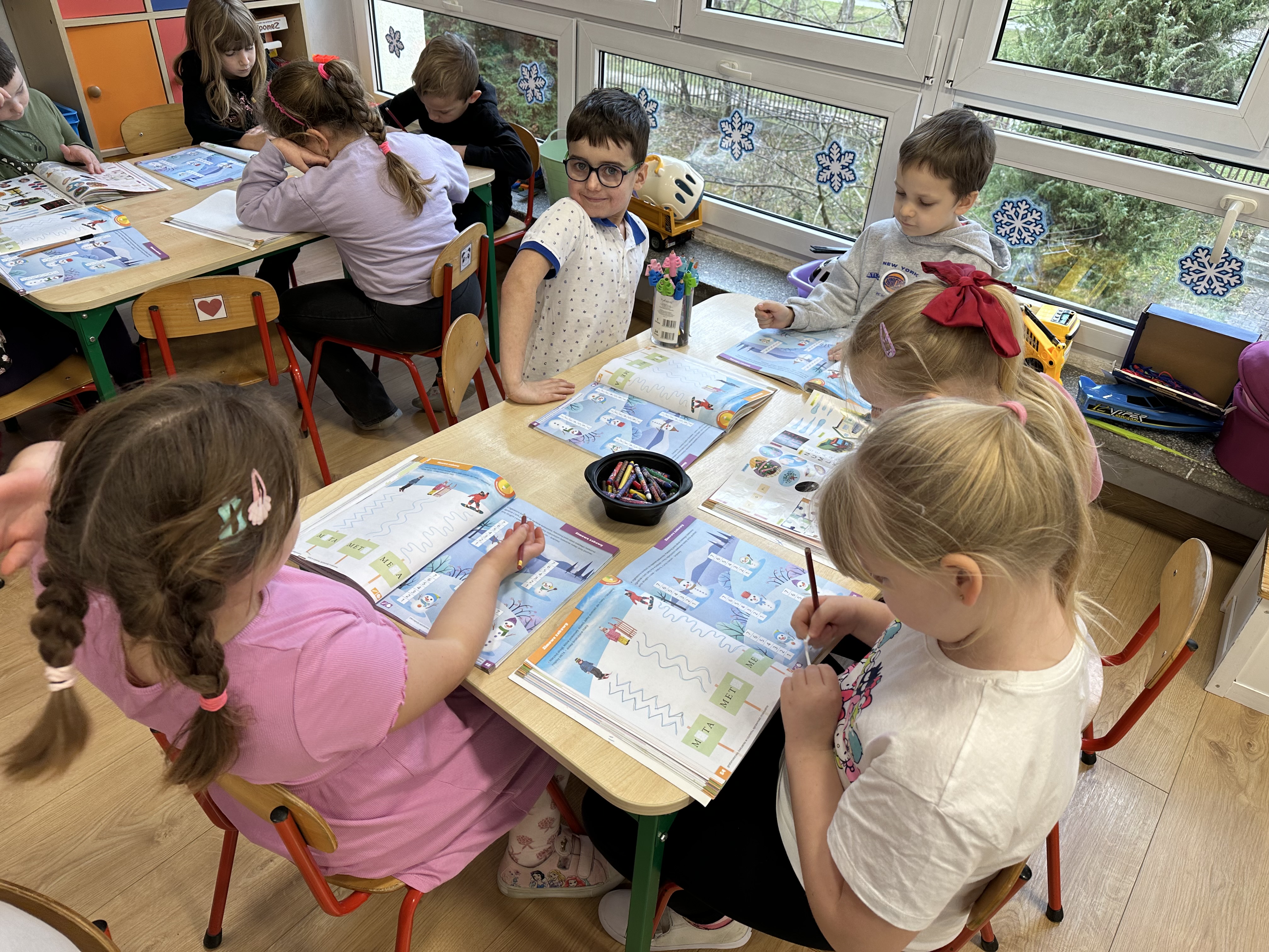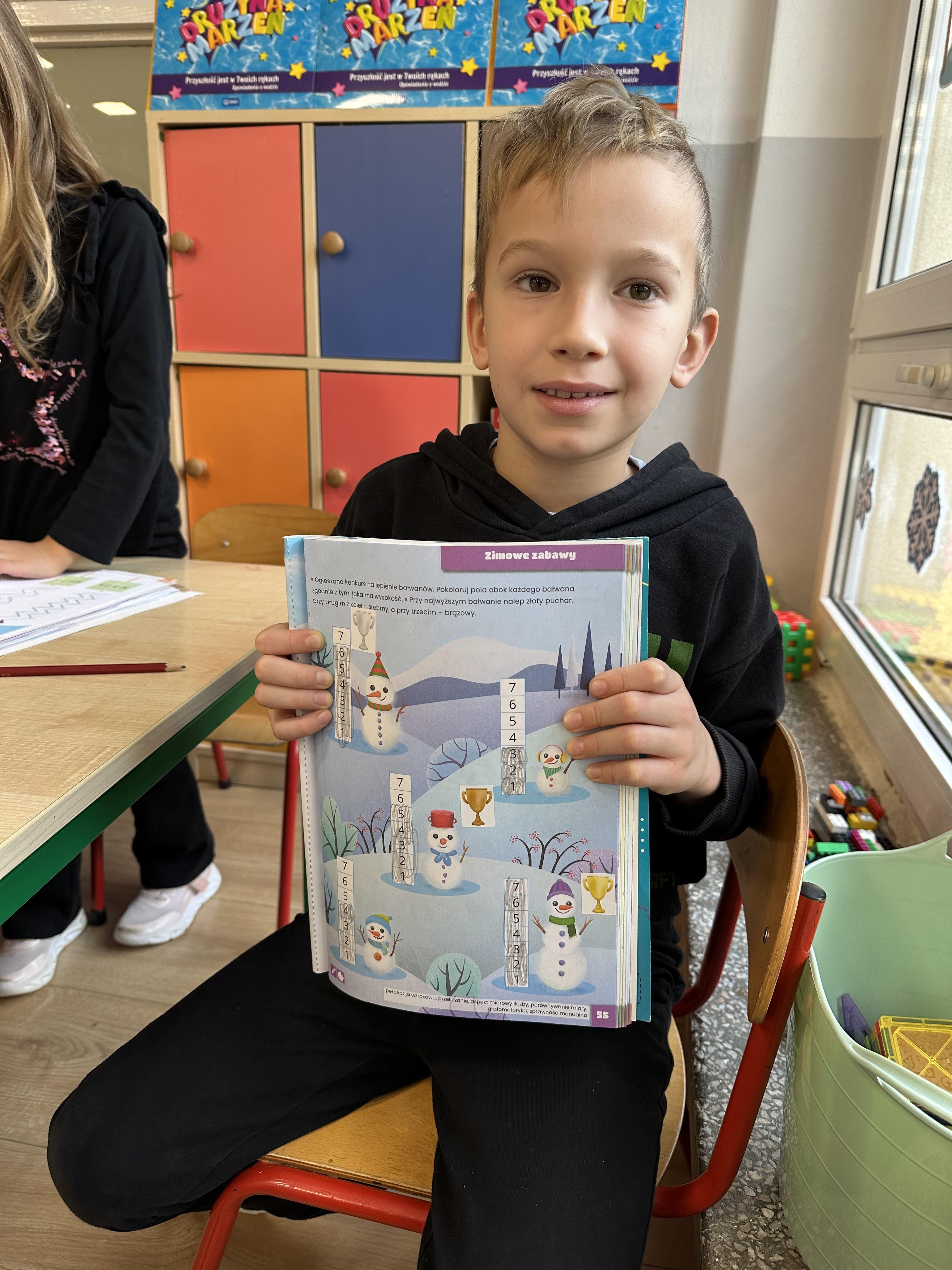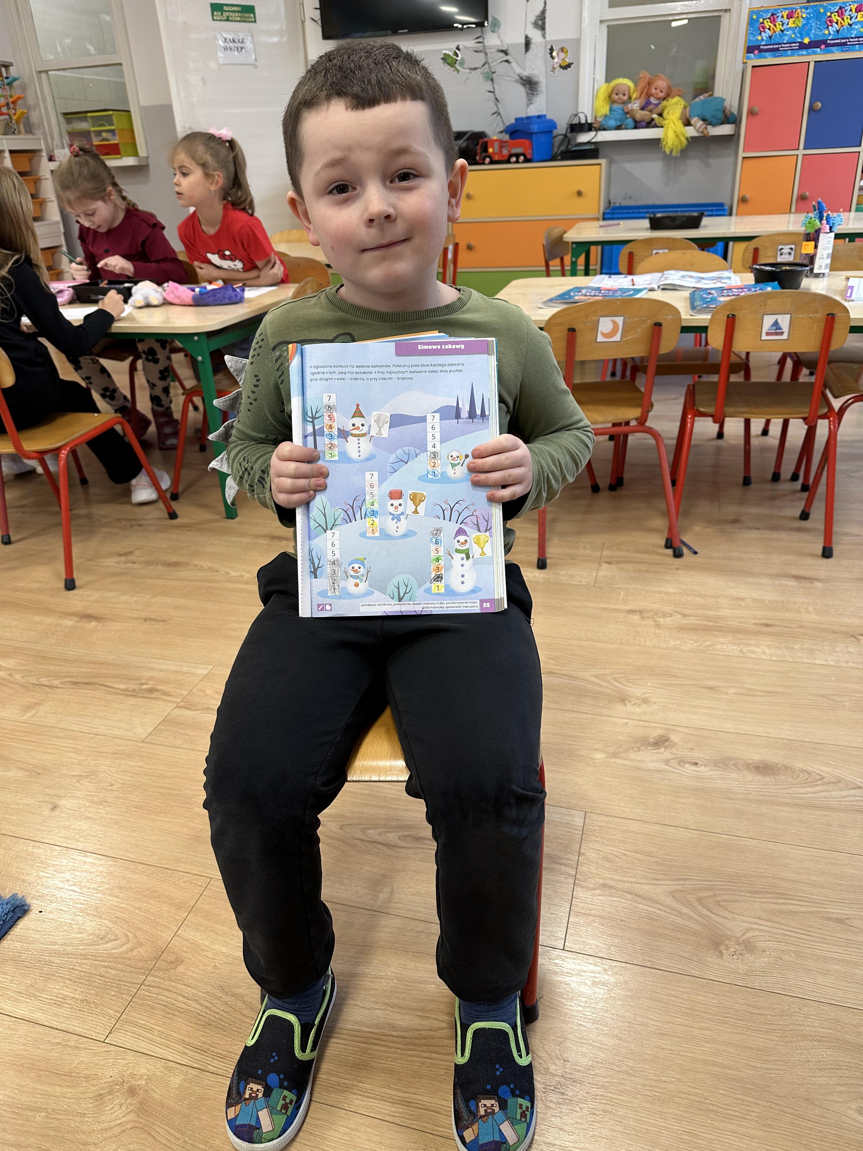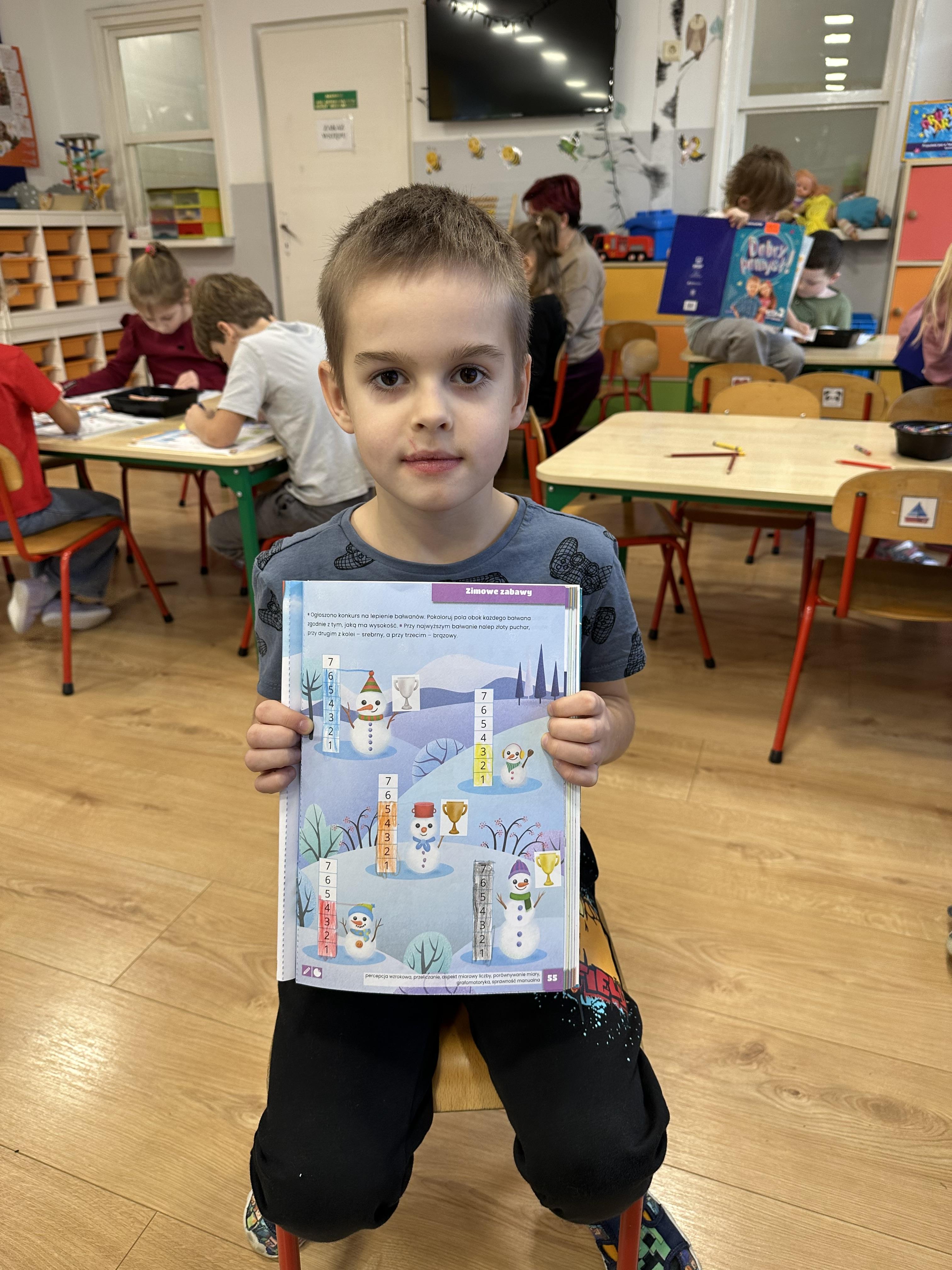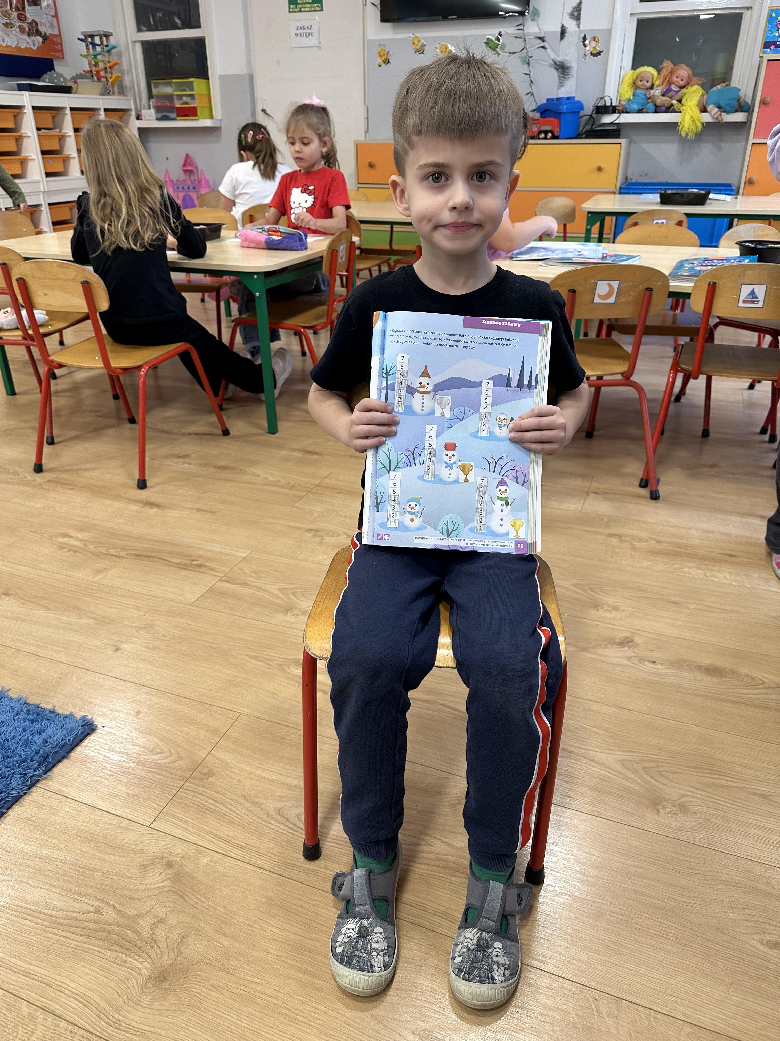 W poniedziałek przedszkolaki wysłuchały opowiadania Marii Pawlisz ,,Za ciasne łyżwy” i rozmawiały na temat jego treści. Miały możliwość podzielić się swoimi doświadczeniami związanymi z początkami nauki wybranego sportu. Doszły do wniosku, że nie można się poddawać, ponieważ wszystko na początku wydaje się trudne. Dzieci rozwijały wyczucie rytmu podczas zabawy ruchowej do muzyki, prawidłowo reagowały na hasło nauczyciela, dzieliły słowo ,,lodowisko” na sylaby, tworzyły z liter podpisy, przełamywały nieśmiałość podczas wypowiedzi na forum grupy dotyczącej sportów zimowych, kształtowały umiejętność współpracy w zespole podczas rzucania do celu. W trakcie zabawy „Który to obrazek?” ćwiczyły umiejętność orientacji w przestrzeni, odróżniały prawą stronę od lewej i odnajdywały głoskę s w nagłosie. Wtorek dzieci zaczęły zabawą logopedyczną rozwijającą poprawną artykulację i motorykę narządów mowy. Po wysłuchaniu opowiadania ,,Dwa medale” rozmawiały na temat postawy fair play, podawały różne jej przykłady w dziedzinach sportu oraz podczas zabaw ruchowych w przedszkolu. W trakcie zajęć dydaktycznych poznały ciekawostki o sportach zimowych, samodzielnie tworzyły zdania z wylosowanym słowem związanym z tematem, poznały nowe zwroty w języku angielskim. Zdobyte wiadomości i umiejętności wykorzystały, wykonując zadania w kartach pracy. Dzień skończyły wykonaniem pracy plastyczno-technicznej. W środę rozwijały umiejętność logicznego myślenia i wnioskowania. Podczas zabawy „Narciarz na trasie” kształtowały umiejętność odkodowywania informacji. Przedszkolaki brały aktywny udział w zabawach orientacyjno-porządkowych, odróżniały prawą stronę od lewej, przeliczały do 6 i rozwijały swoje kompetencje matematyczne, kształtowały równowagę i współpracę w zespole, wykonywały ćwiczenia według kodu. W trakcie zabaw przy stolikach sprawdzały swoją wiedzę, natomiast na dworze ćwiczyły duże partie mięśniowe oraz wzmacniały kondycję fizyczną, bawiąc się w berka. W czwartkowy poranek przedszkolaki układały z liter podpisy do obrazka oraz dzieliły na sylaby utworzone słowa. Po wysłuchaniu wiersza Magdaleny Witkiewicz sprawdzały, ile z niego zapamiętały, odpowiadając na pytania nauczyciela. W czasie zabawy „Wyprawa pana Bałwana” pilnowały przestrzegania reguł oraz uczyły się przegrywania. Na koniec dnia stworzyły gwiazdy z papierowych kół. W piątek wykonywały ćwiczenia do muzyki, rozwijały poczucie rytmu i ekspresję ruchów, kształtowały orientację w przestrzeni, uczyły się współpracy w zespole i uwrażliwiały się na formę utworu. W zabawie „Pływające kolory” sześciolatki rozwijały wrażliwość sensoryczną podczas aktywności z lodem, malowały farbami na powierzchni lodu i obserwowały efekty wizualne. Wspólnie odnajdywały na mapie: Grenlandię, Arktykę, Antarktydę i odczytywały ich nazwy, następnie porównywały, jak daleko od tych krain leży Polska. Porównywały także różne typy domów w zależności od szerokości geograficznej. W czasie indywidualnej pracy przy stolikach dzieci odczuwały radość podczas aktywności plastyczno-technicznych – wykonały śnieżynkę zgodnie z instrukcją. Dzień zakończyły zabawą matematyczną z elementami rywalizacji.