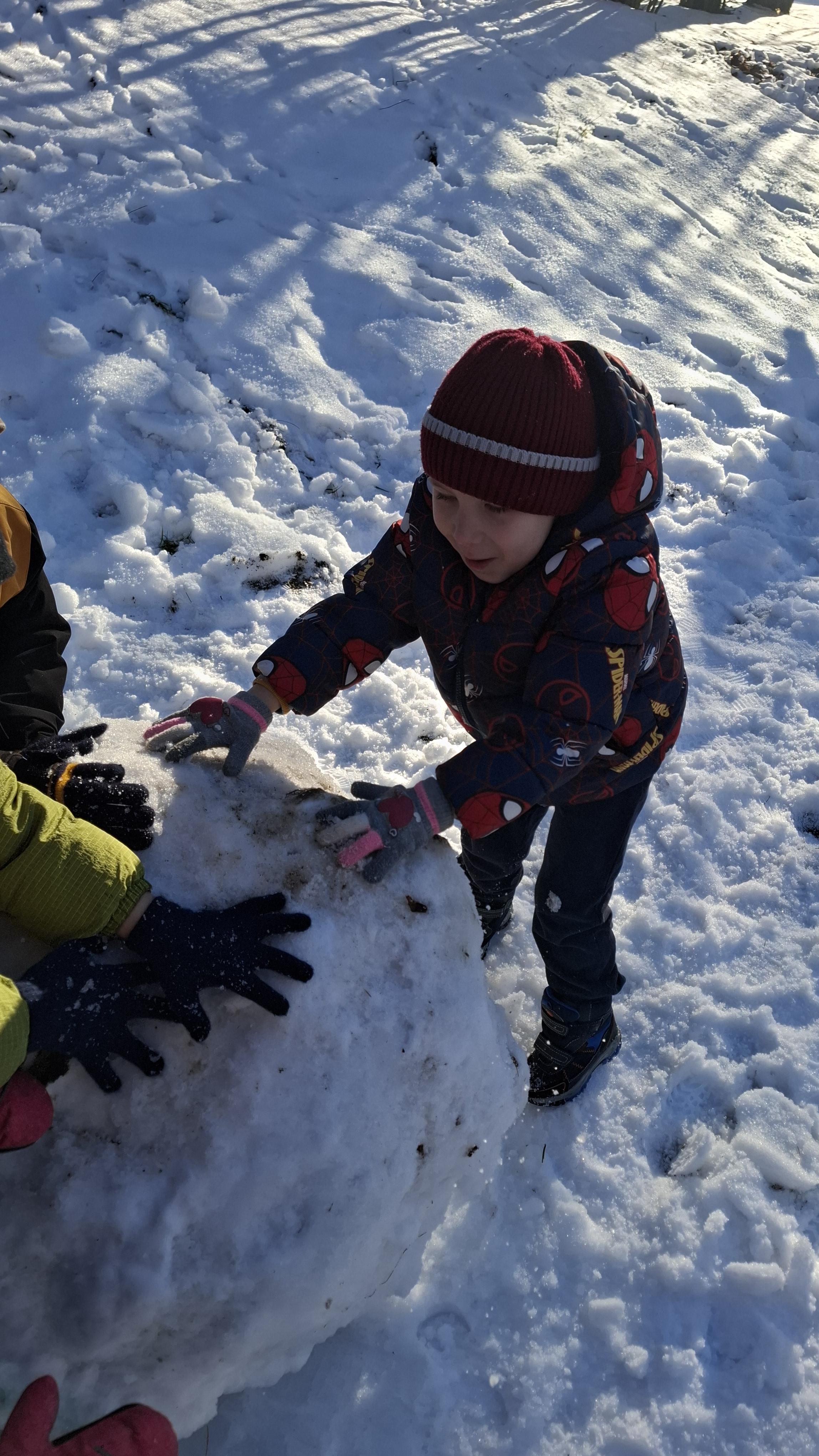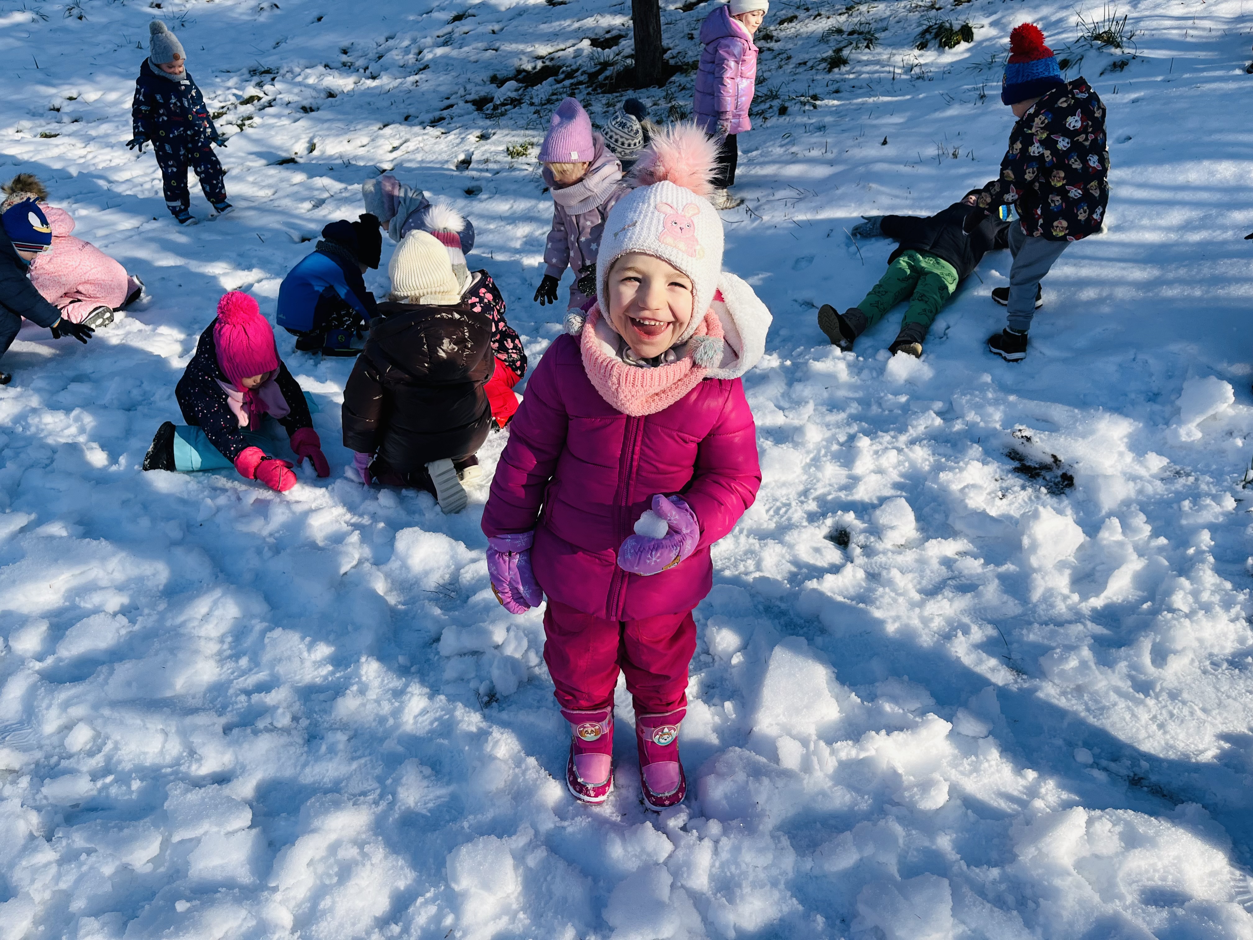 dziś nasze przedszkolaki miały okazję skorzystać z prawdziwie zimowej aury i spędzić radosny czas w ogrodzie przedszkolnym. Pogoda dopisała – świeciło słońce, a biały puch zachęcał do aktywnej zabawy na świeżym powietrzu. Dzieci z ogromnym zaangażowaniem lepiły śnieżne kulki, toczyły duże kule po ogrodzie oraz tworzyły piękne aniołki na śniegu. Nie brakowało śmiechu, ruchu i wspólnej radości z bycia razem.