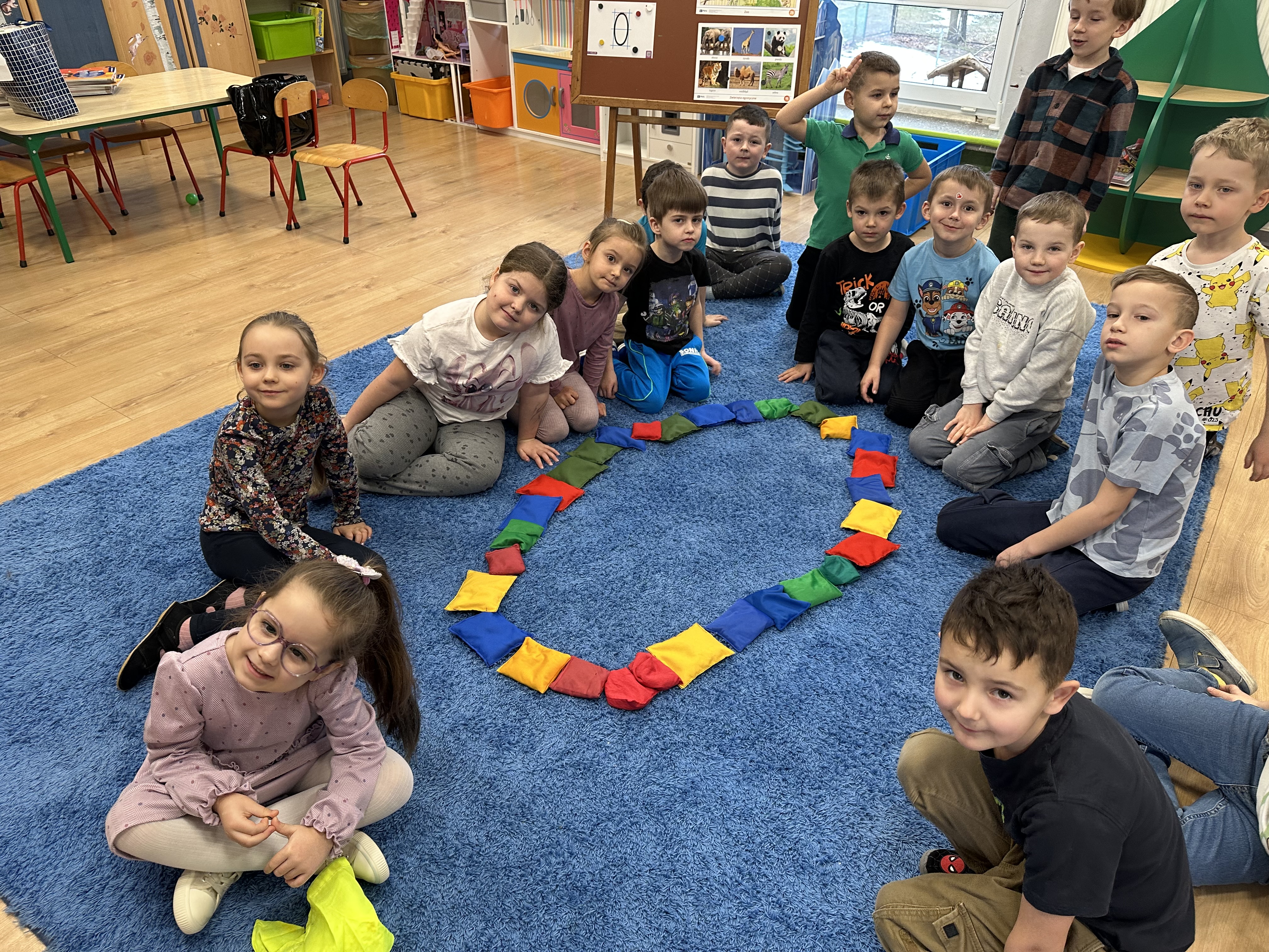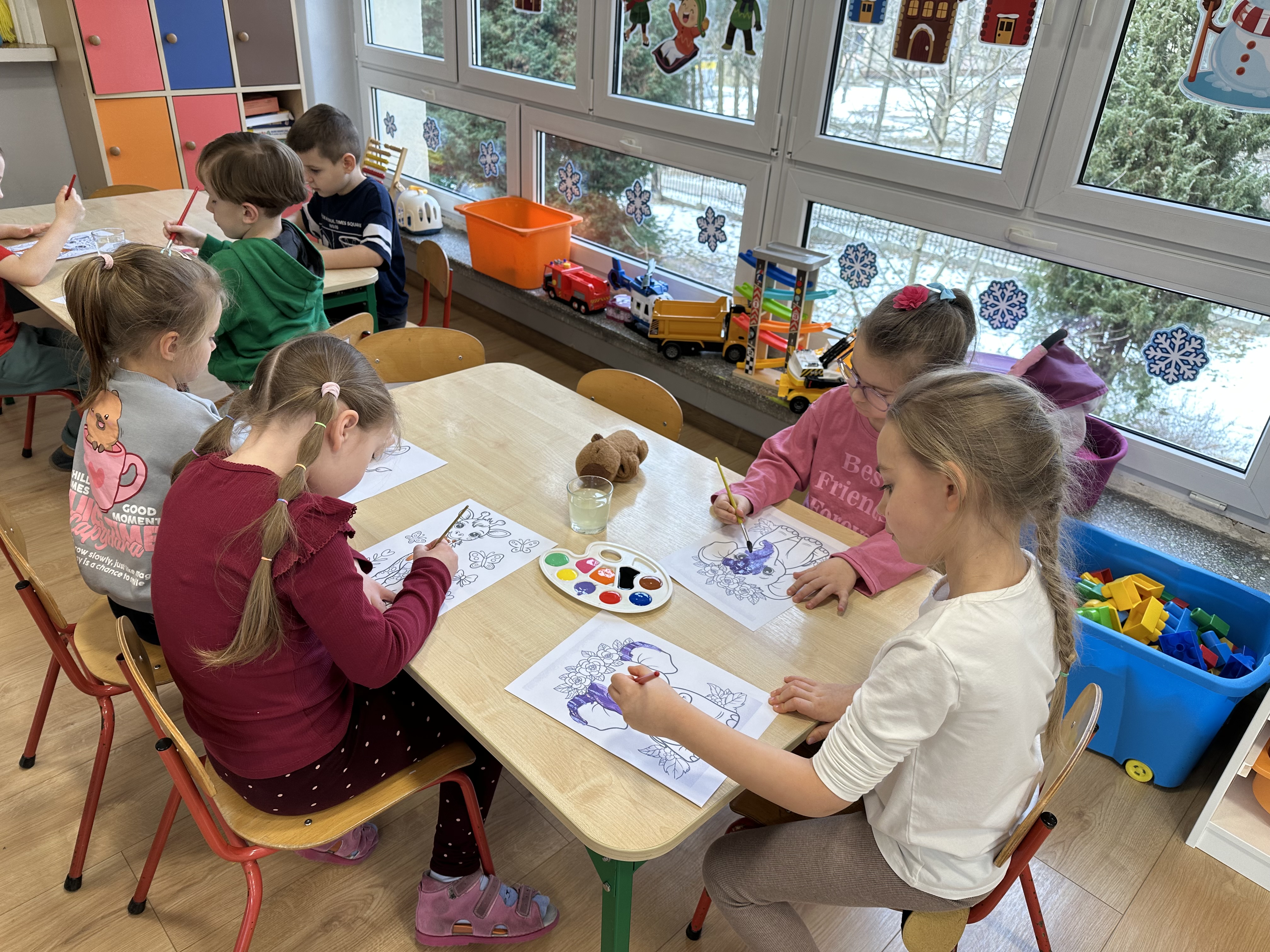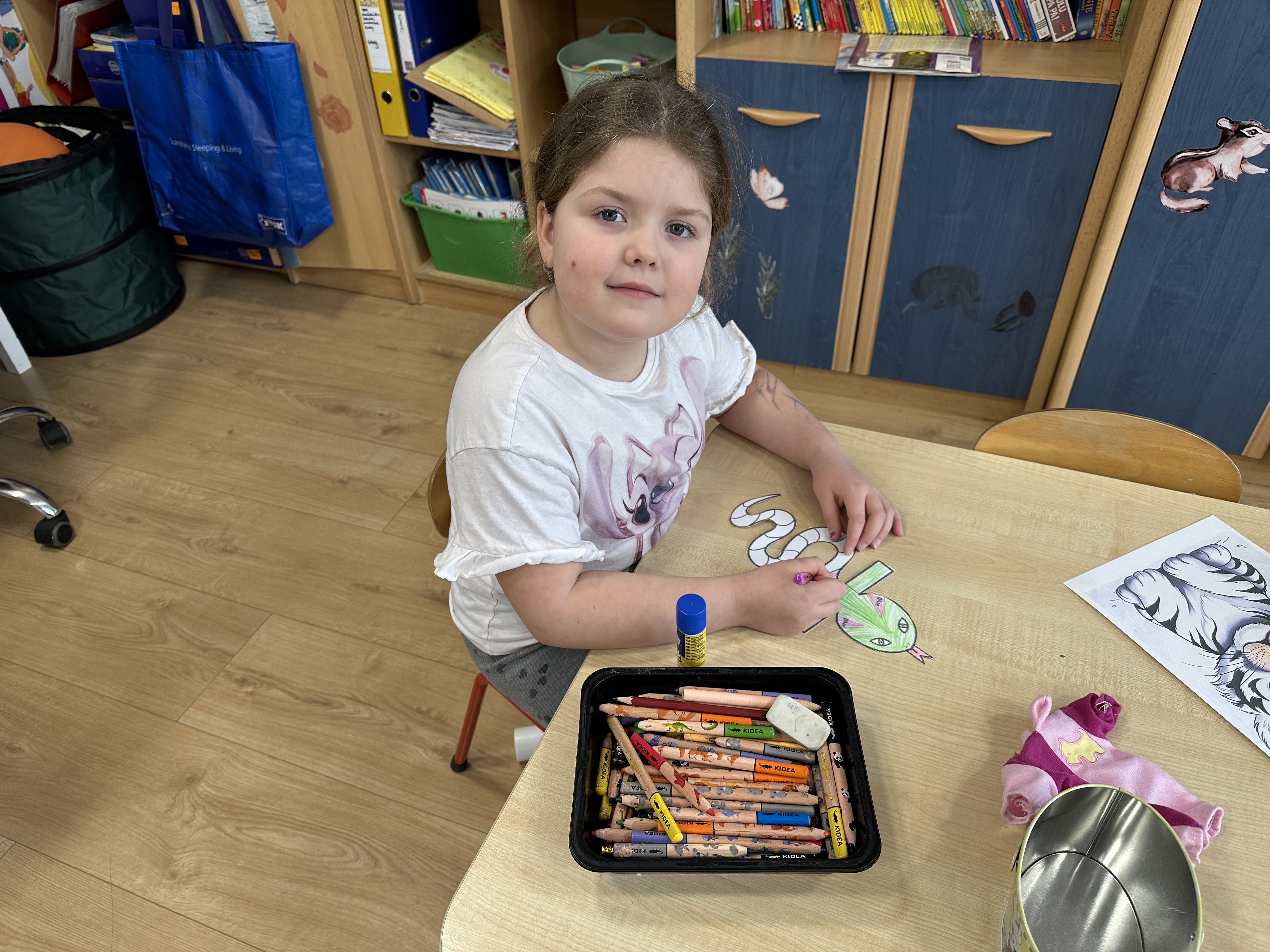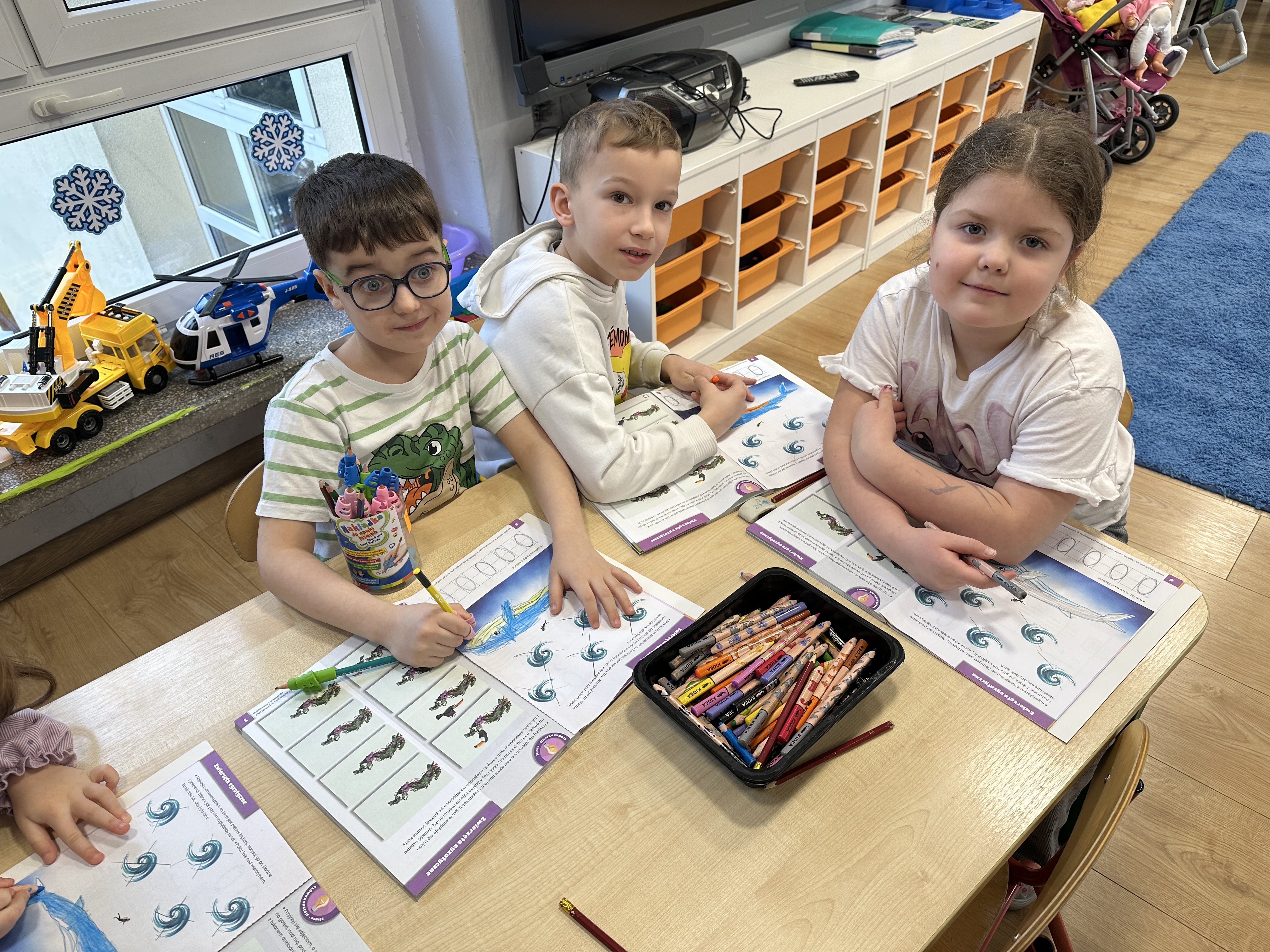 W minionym tygodniu podczas zajęć dzieci nie tylko rozmawiały o zwierzętach egzotycznych, lecz także rozwijały umiejętności nazywania i rozpoznawania emocji. Dodatkowo nauczyły się nowej powitanki pt. ,,Zwierzęta egzotyczne”, którą każdego poranka ilustrowały ruchem.