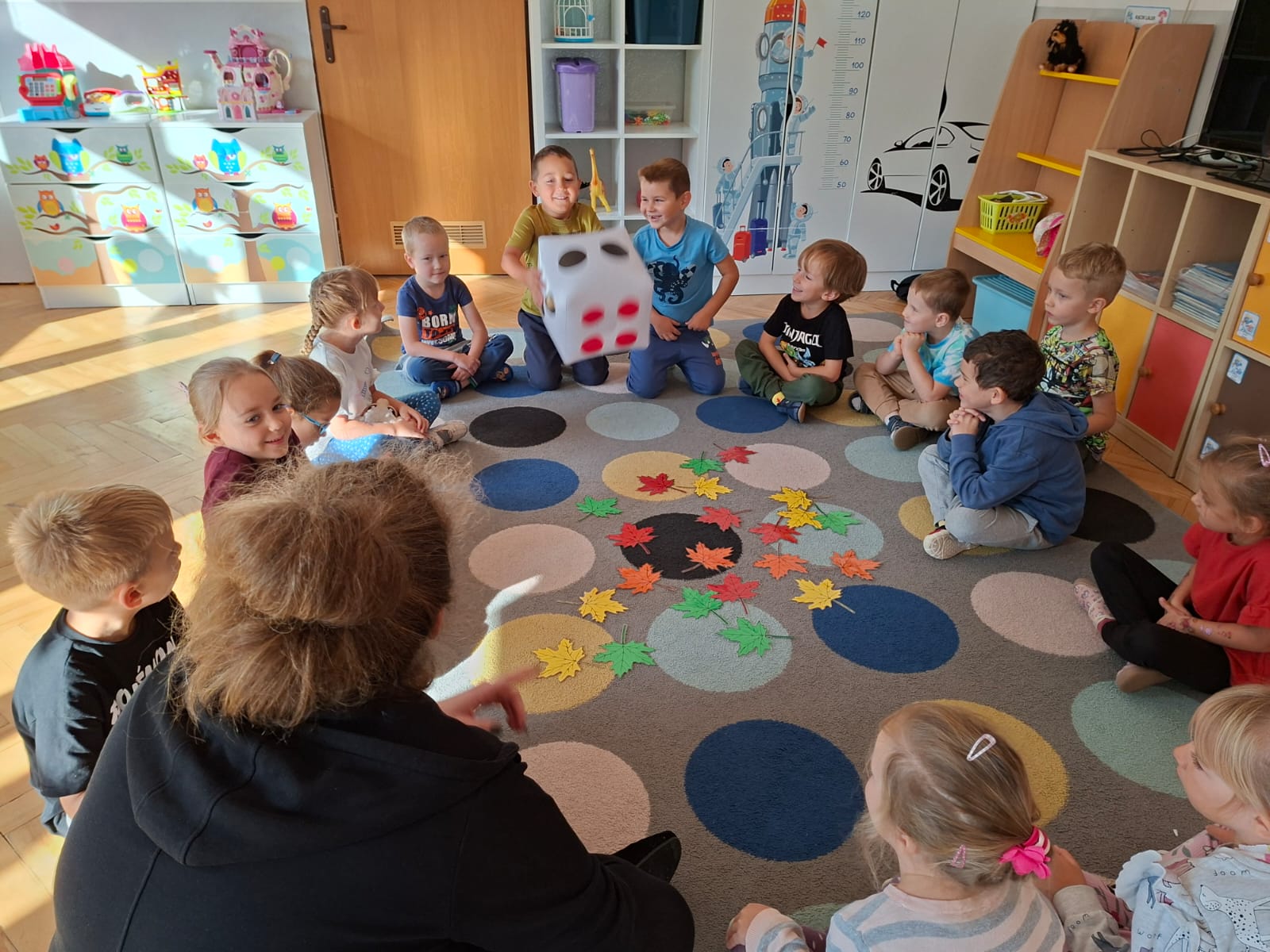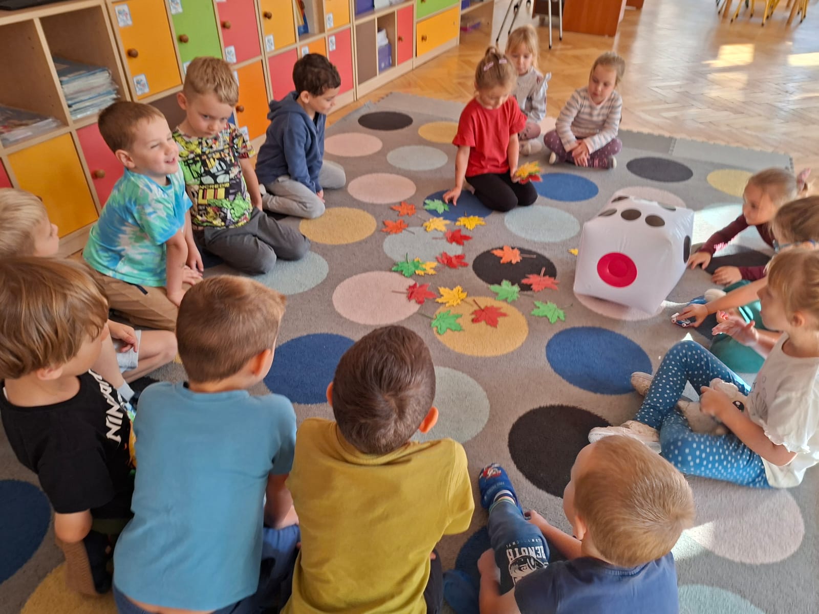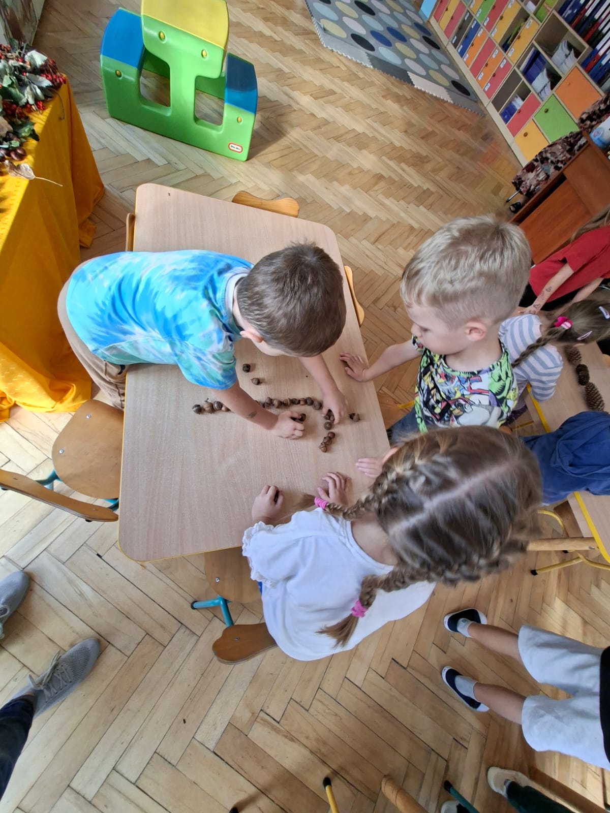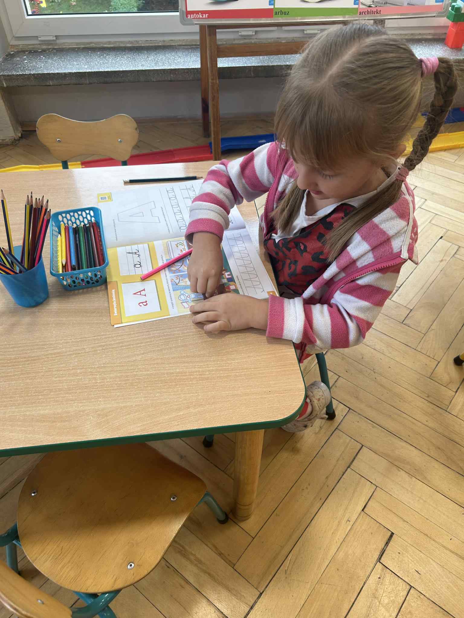 W tym tygodniu poznaliśmy literkę A, a ( pisaną i drukowaną) oraz cyferkę 1 wykonując z nimi ćwiczenia grafomotoryczne, zadania w naszych książkach, utrwalając je poprzez układanie z darów jesieni oraz pisząc w kaszy manny. Przeliczaliśmy również liście, rzucając kostką.