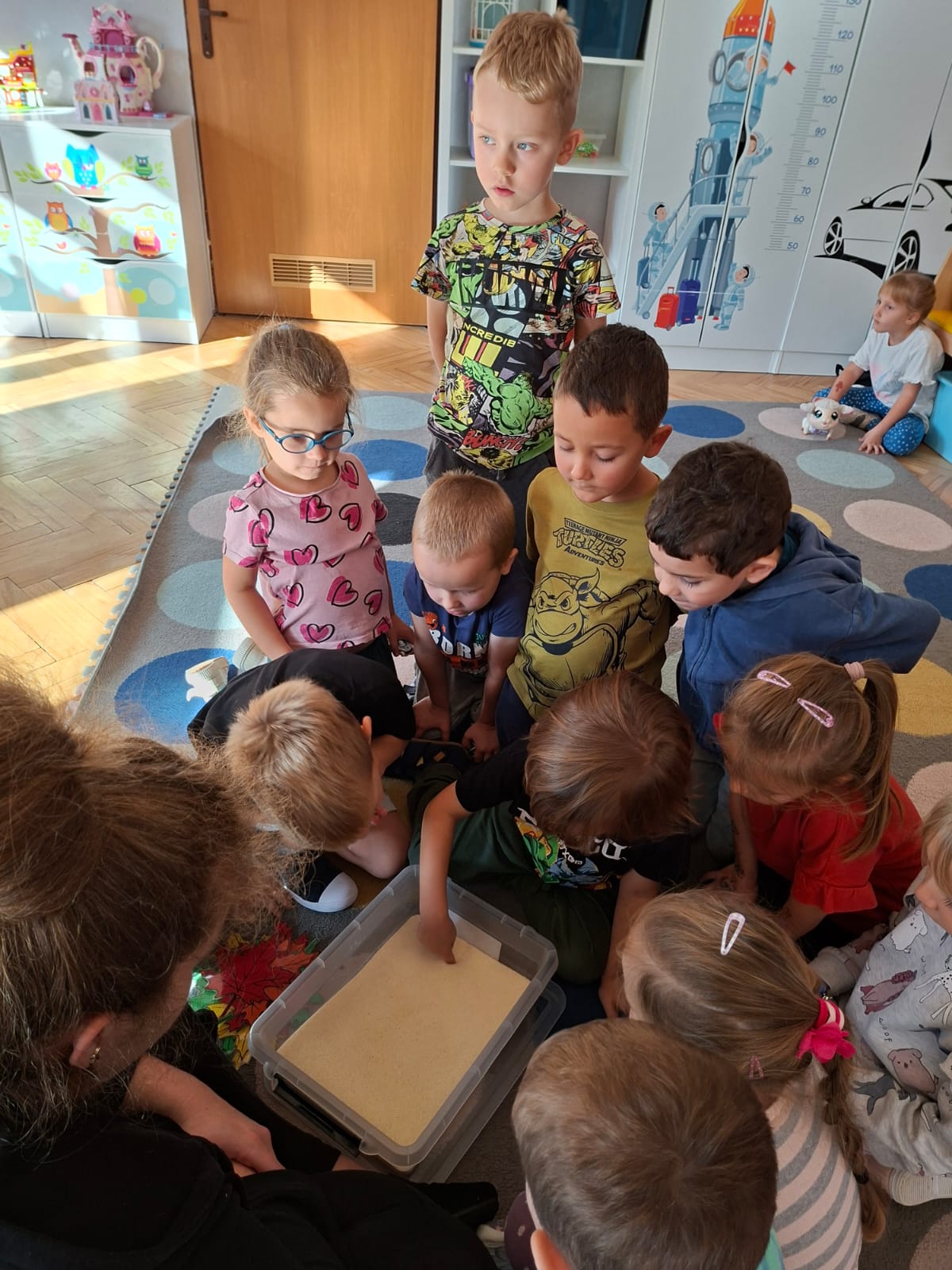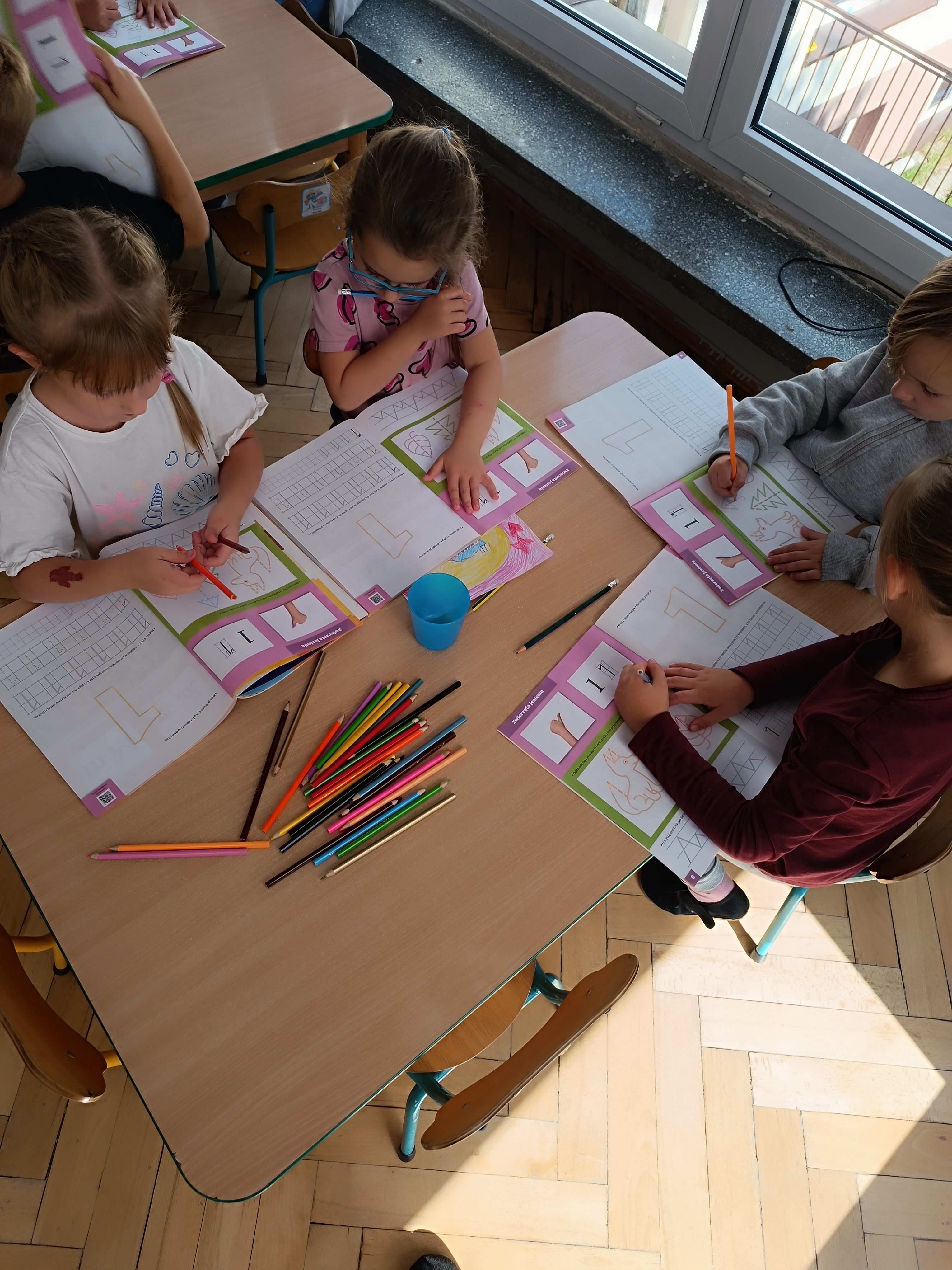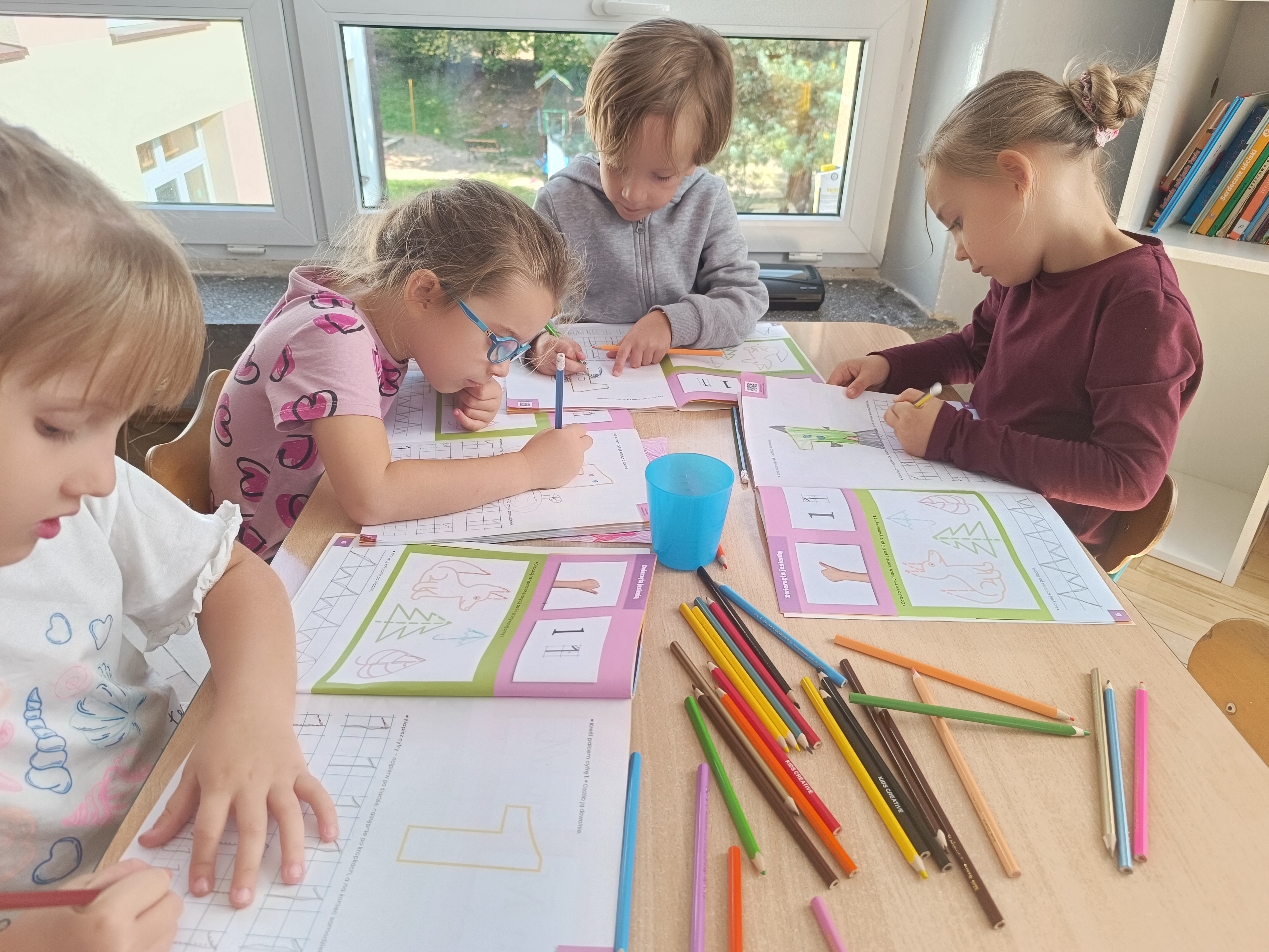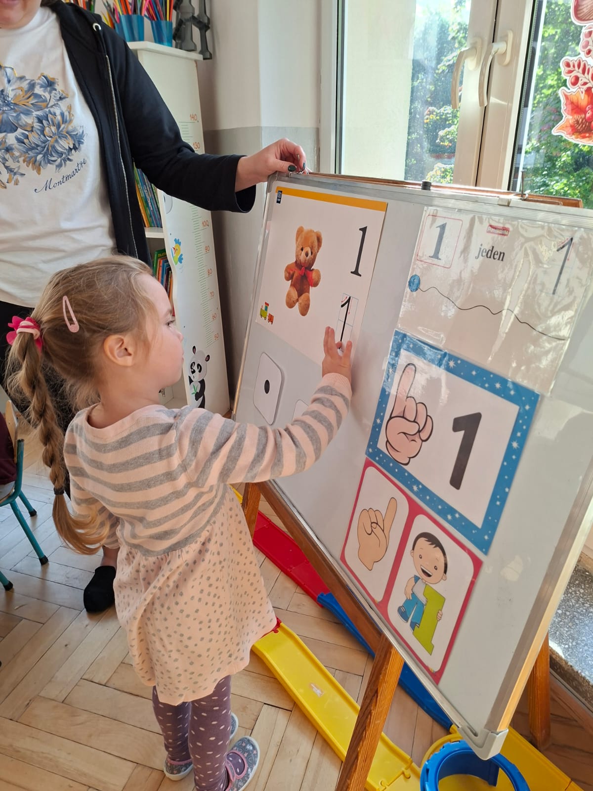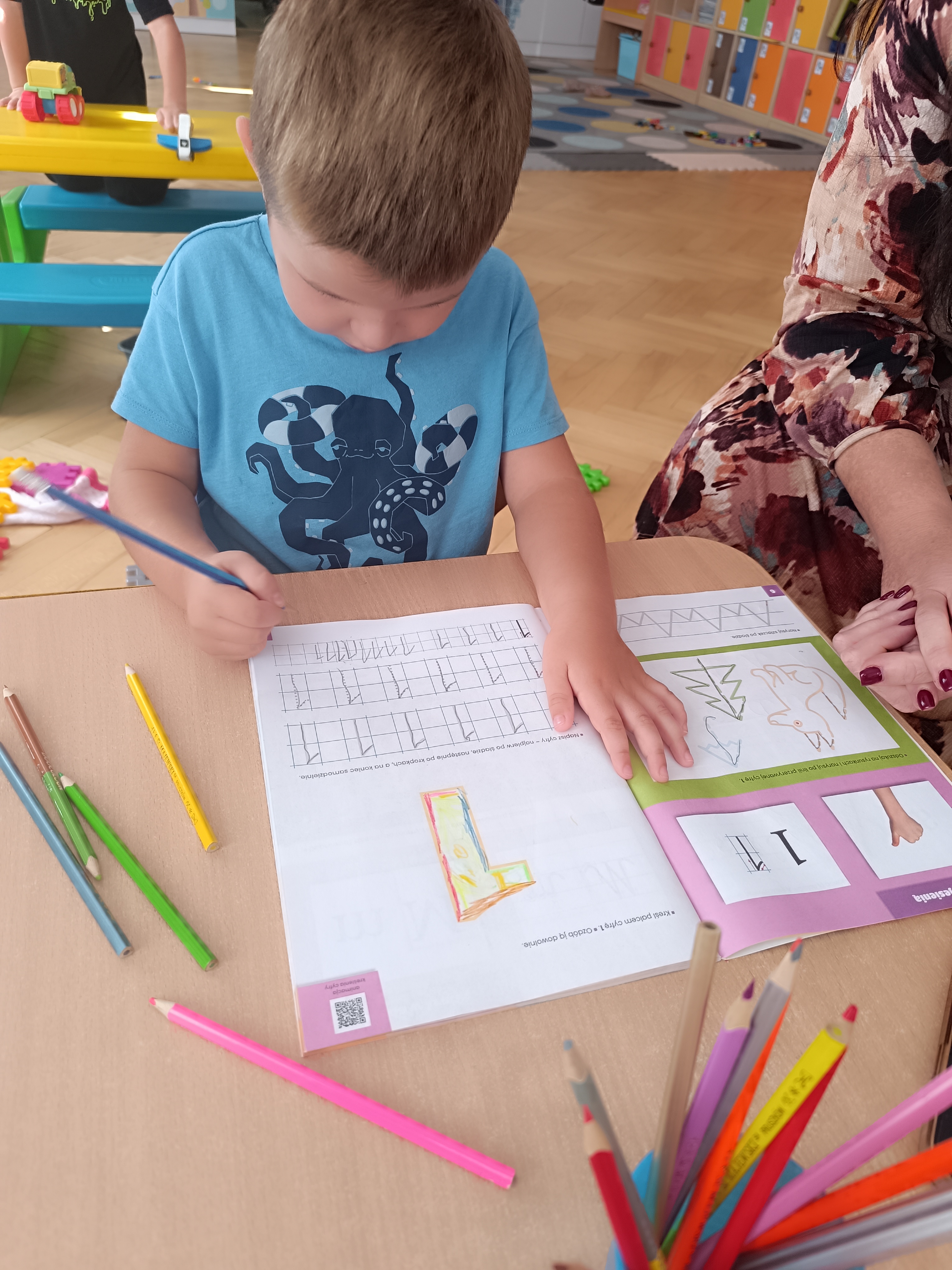 W tym tygodniu poznaliśmy literkę A, a ( pisaną i drukowaną) oraz cyferkę 1 wykonując z nimi ćwiczenia grafomotoryczne, zadania w naszych książkach, utrwalając je poprzez układanie z darów jesieni oraz pisząc w kaszy manny. Przeliczaliśmy również liście, rzucając kostką.