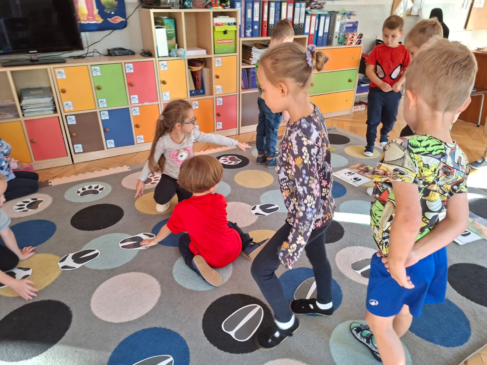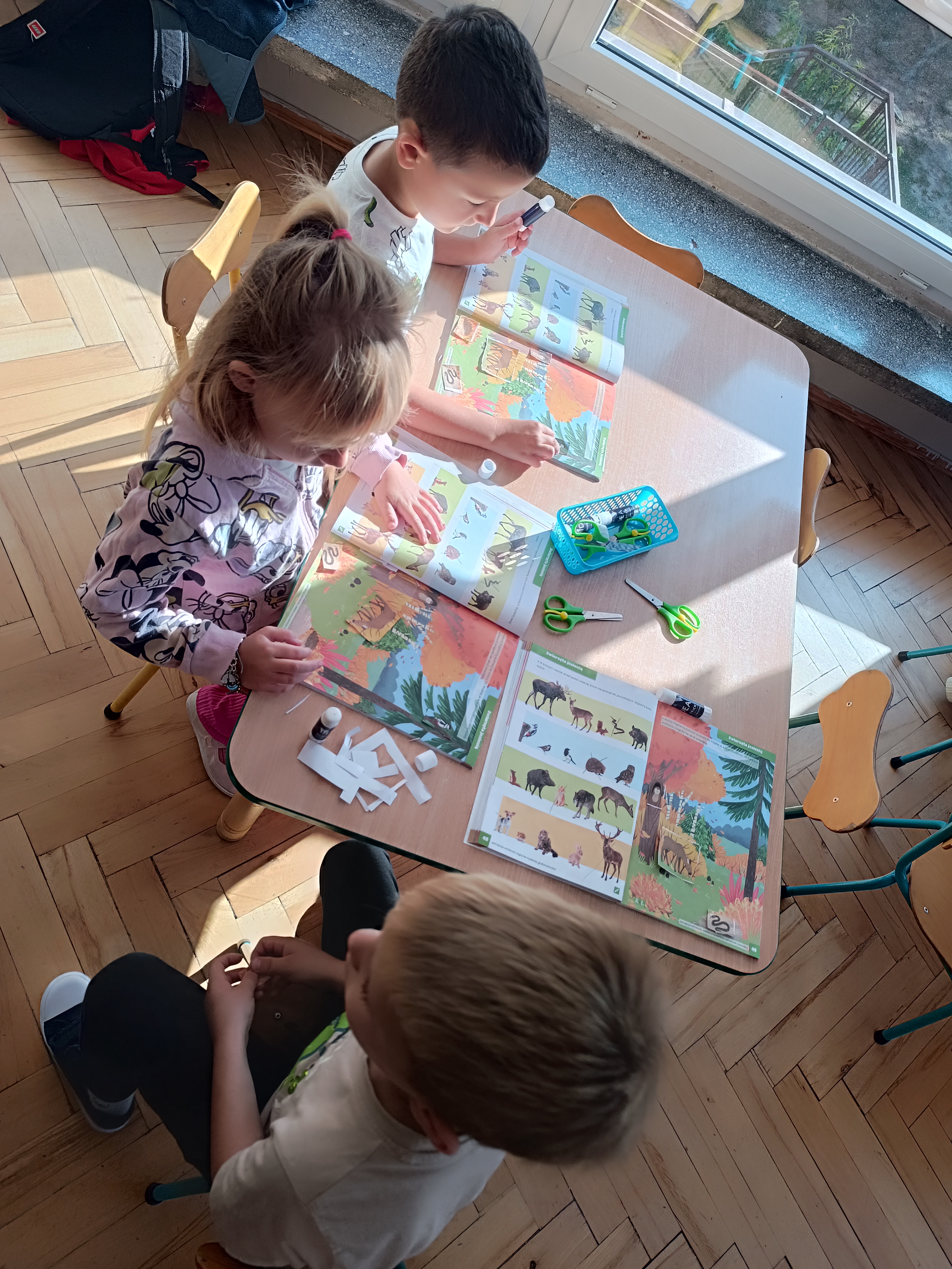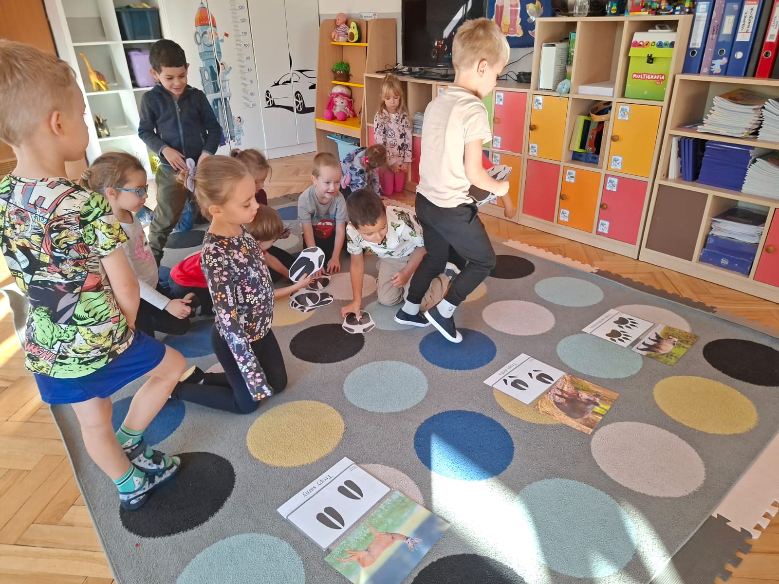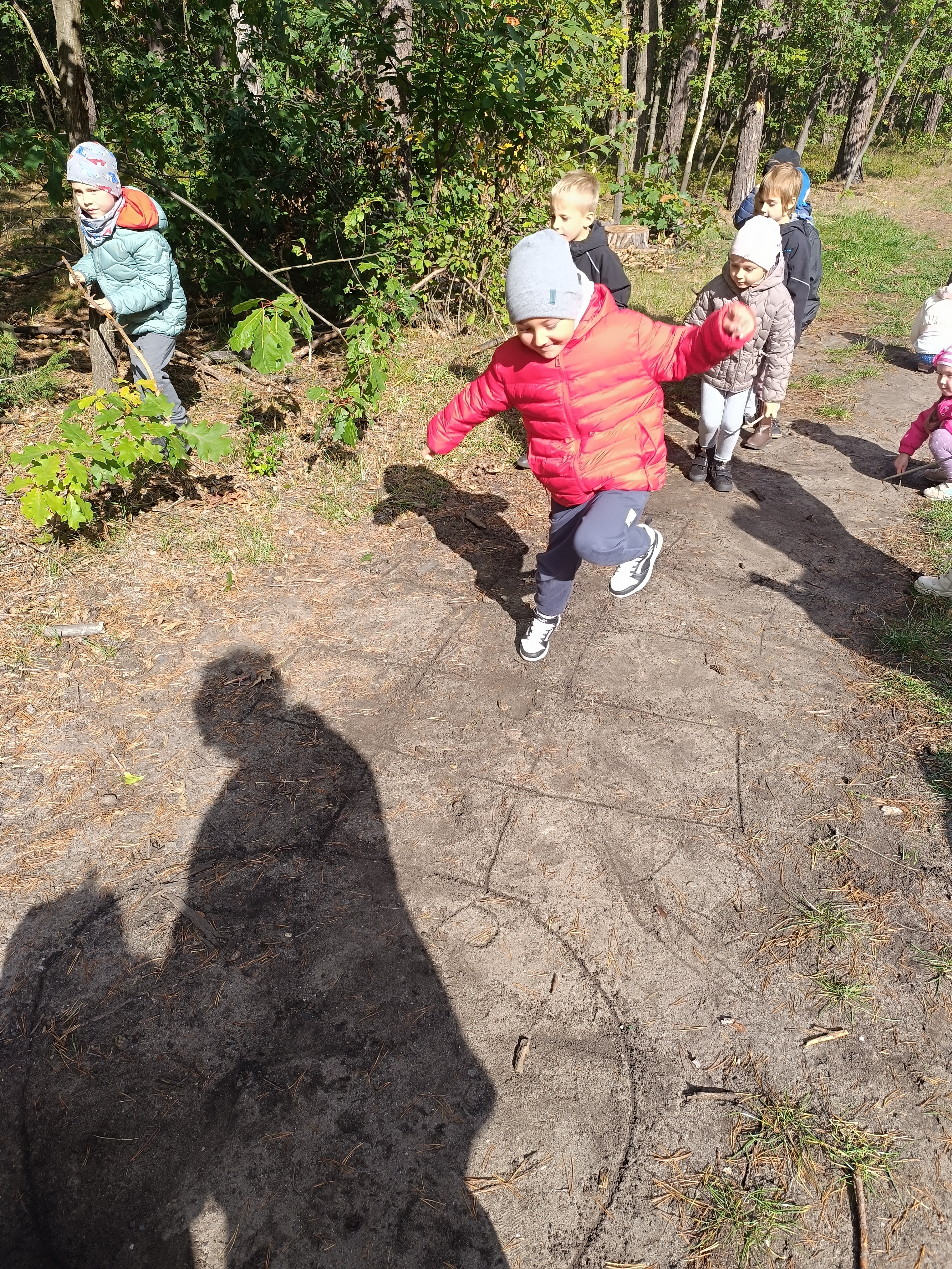 Rozmawialiśmy o tym jak należy zachowywać się w lesie, poznaliśmy zwierzęta mieszkające w lesie, ich tropy, bawiąc się w zabawy ruchowe z użyciem tropów zwierząt, " Wiewiórki do dziupli hop". Dowiedzieliśmy się różnych ciekawostek na temat zwierząt mieszkających w lesie.