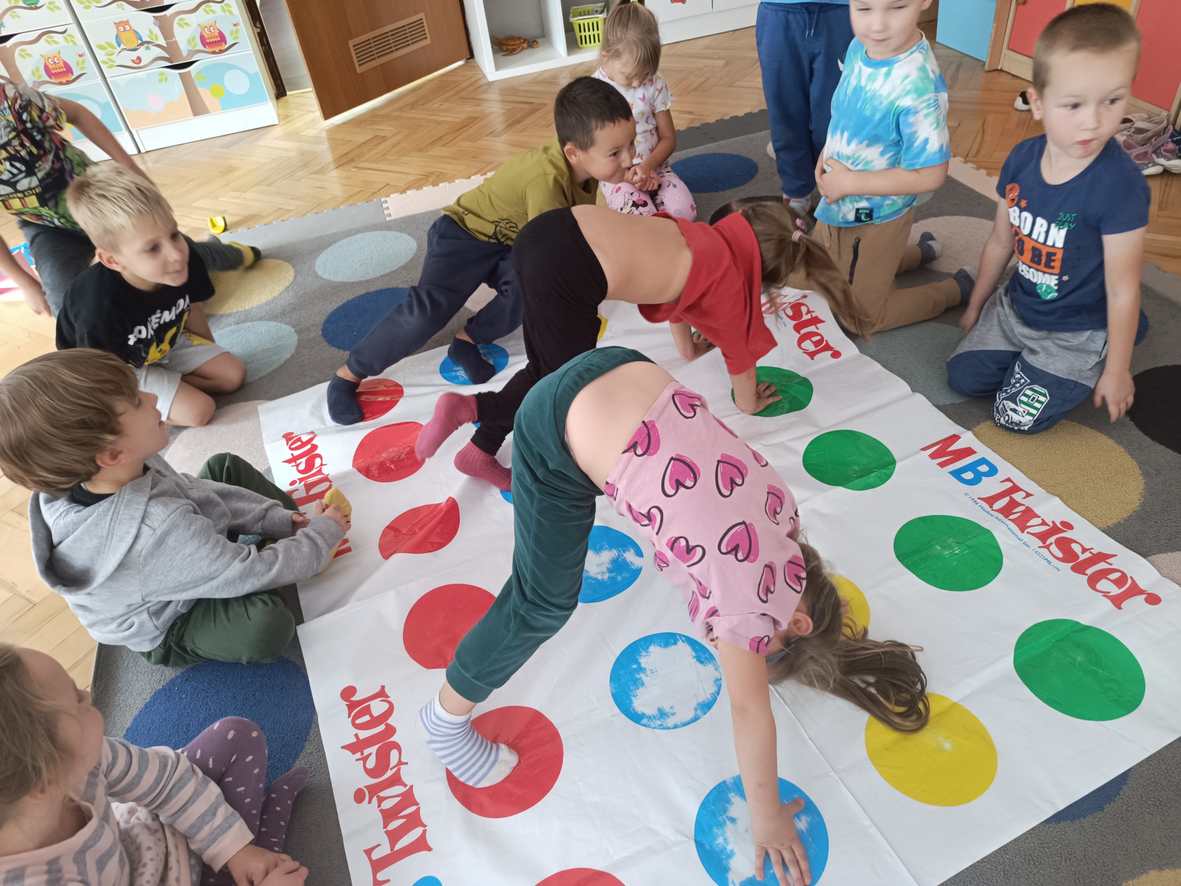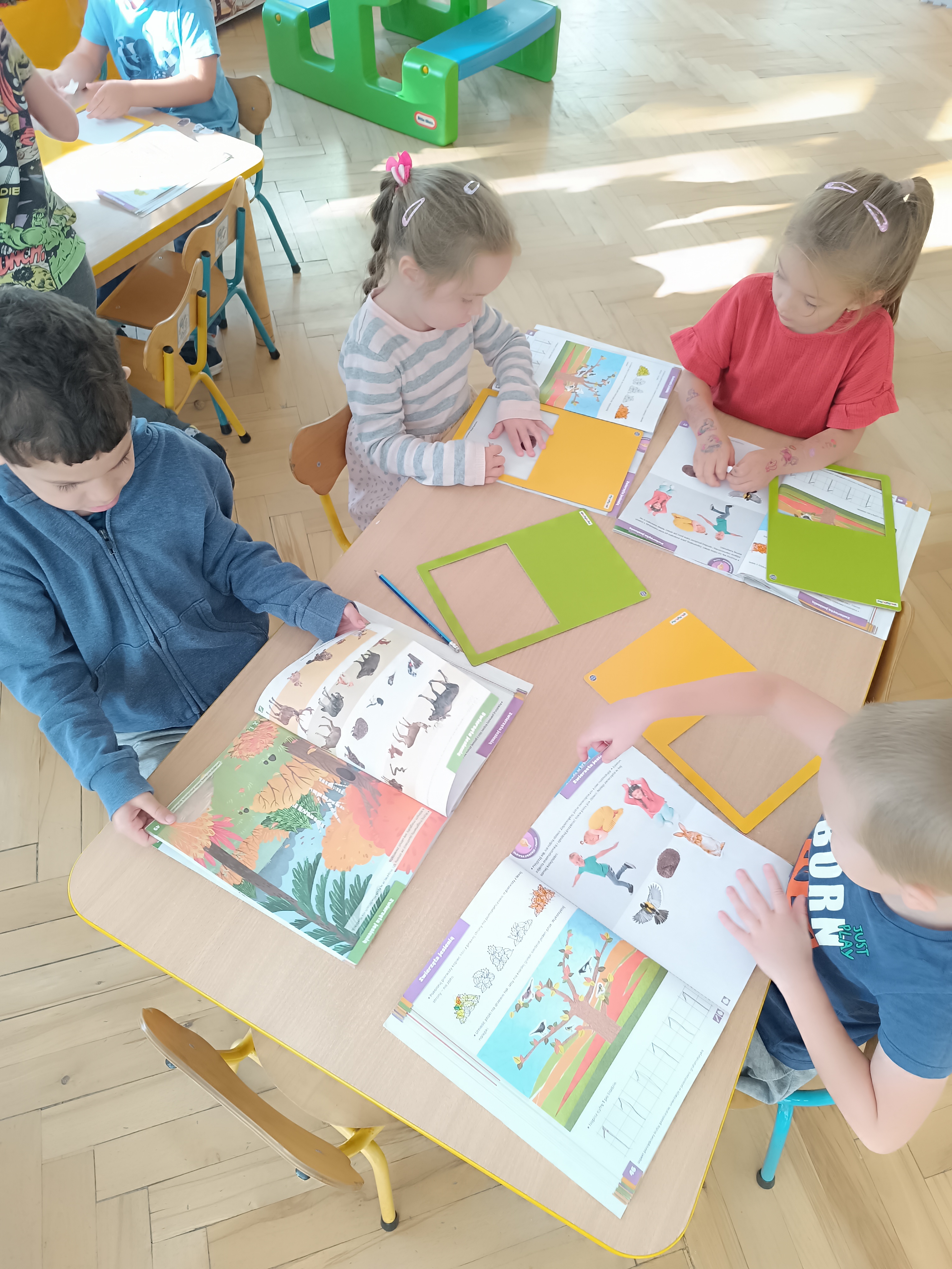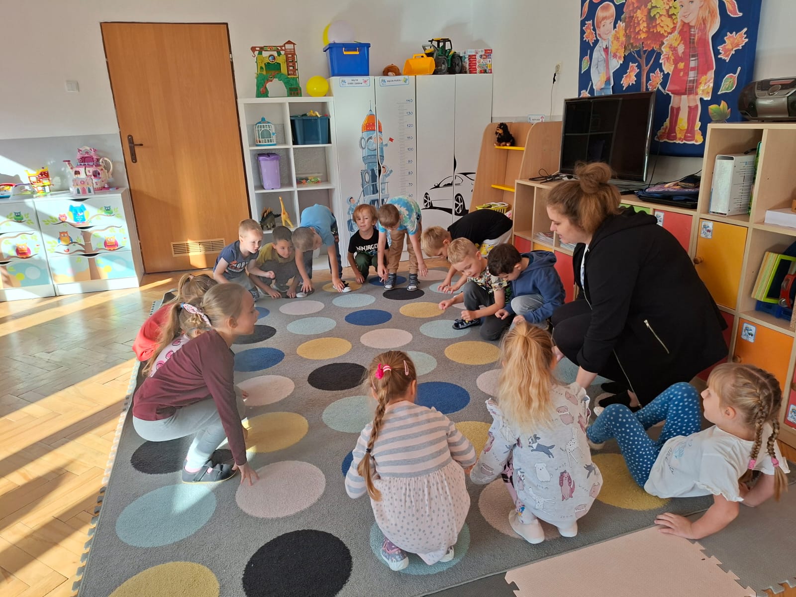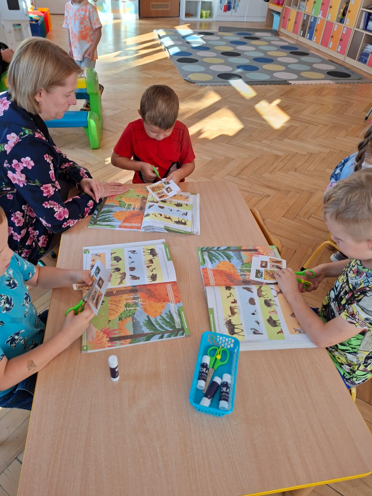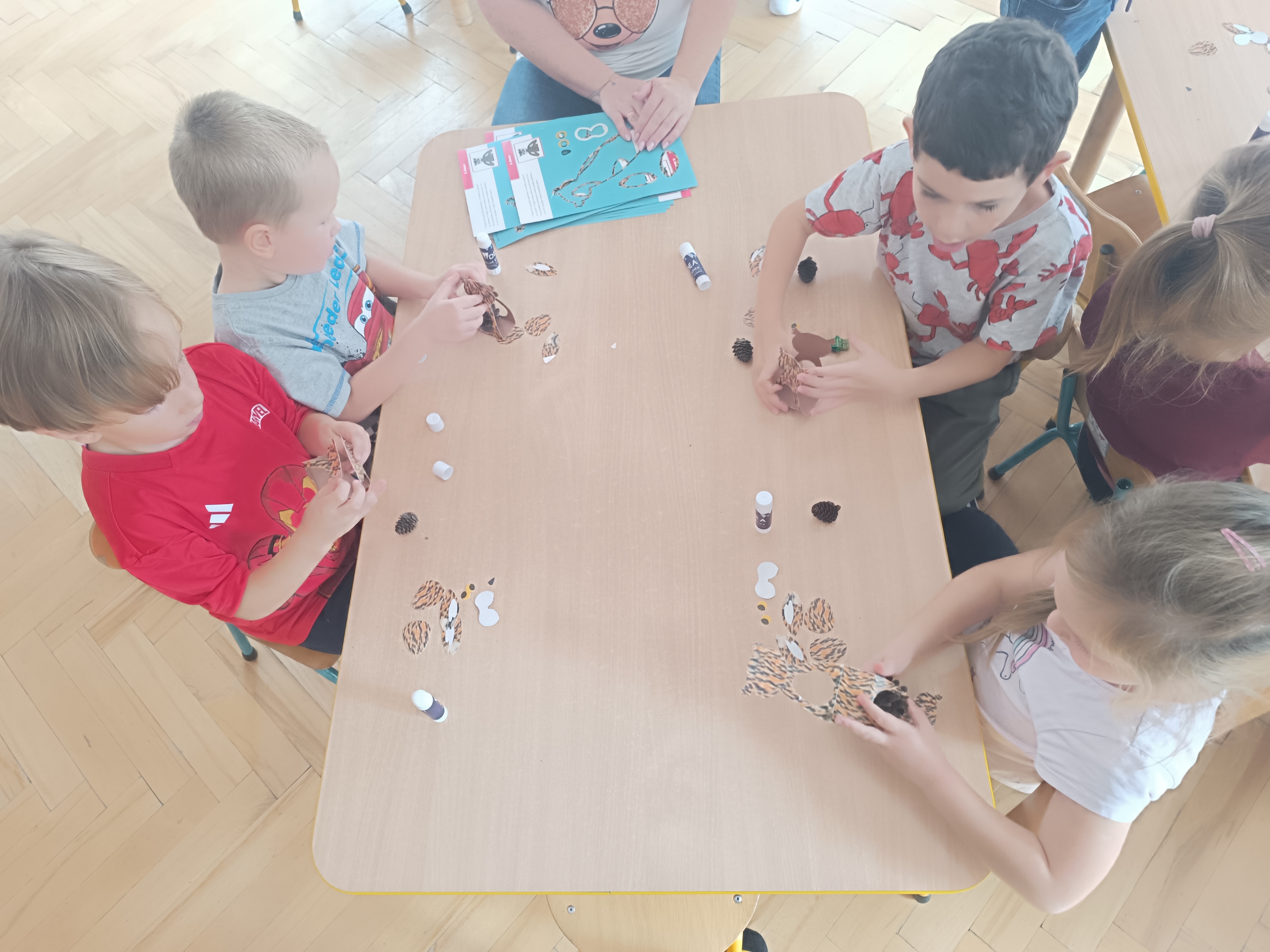 Rozmawialiśmy o tym jak należy zachowywać się w lesie, poznaliśmy zwierzęta mieszkające w lesie, ich tropy, bawiąc się w zabawy ruchowe z użyciem tropów zwierząt, " Wiewiórki do dziupli hop". Dowiedzieliśmy się różnych ciekawostek na temat zwierząt mieszkających w lesie.
